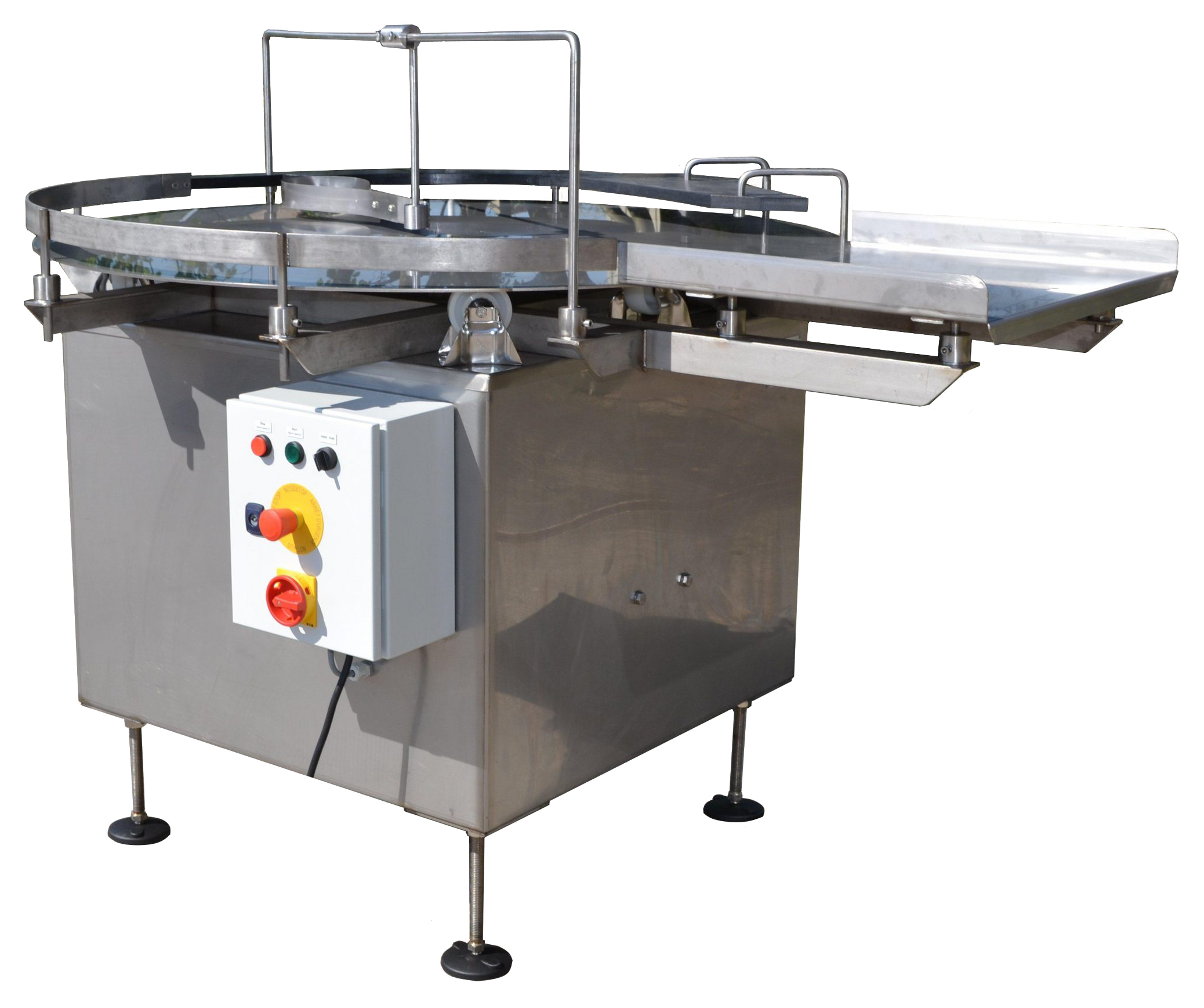 De IMH Invoer Draaitafel TT120-CF is een middelgrote draaitafel met een diameter van 1.200 mm, ontworpen voor het lineair invoeren van potten, blikken of flessen in een productielijn. Ideaal als aanvoer naar een etiketteer- of afvulmachine, biedt de tafel automatische toevoer met een frequentiegestuurde aandrijfmotor voor optimale snelheid. De machine is stabiel, eenvoudig aanpasbaar voor verschillende potdiameters, en vervaardigd van RVS en kunststof voor duurzaamheid.