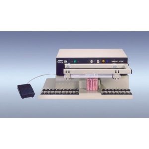 Polystart tafelmagneet sealer met horizontale sealbekken. Geschikt voor het sealen van polyethyleen film tot 2 x 0,4 mm, ook PE gecoate laminaten zoals aluminium PE en papier met PE coating.