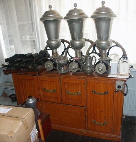 ATC coffee grinder is a 3 heads coffee grinder built on a beautiful lacquered wooden counter. The counter is equipped with drawers and closet door.