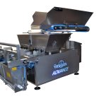 The installation is built in a Stainless steel frame, equipped with an FMC vibration motor, a stainless steel vibration channel, product supply hopper and a dosing hopper with bag clamp.