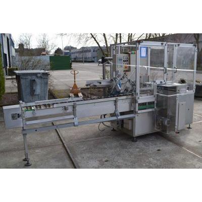 A horizontal intermittently operating cartonning machine equipped with a carton magazine. The cartons are taken out from a magazine, and closed by Hotmelt adhesive nozzles. Machine is not equipped with Product infeed conveyor and outfeed conveyor.