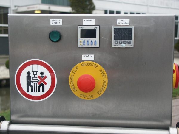 Pneumatische Mechanische tafel sealmachine voor het sealen van Heatseal zakken (niet geschikt voor polythyleen films). De gevulde zak wordt op de tafel gelegd, de opening van de zak word tussen de seal bekken gelegd en daarna wordt er d.m.v. een twee knopsbediening, het seal mechanisme in werking gezet. Na het sealen zal de sealbek automatisch worden geopend en kan de zak worden weg genomen. De sealtijd en de temperatuur zijn vrij instelbaar binnen het bereik van de machine.