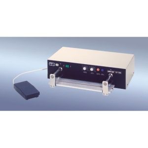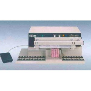 Tafelmagneetsealer met horizontale sealbekken. Geschikt voor het sealen van polyethyleen film tot 2 x 0,4 mm, ook PE gecoate laminaten zoals aluminium PE en papier met PE coating.